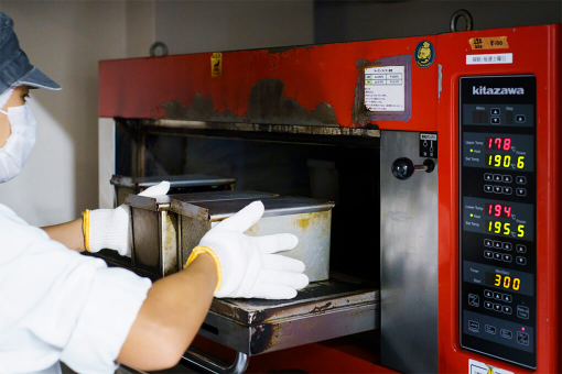 MAKING BREAD パンづくりについて ふんわり、もっちりとした生地の食感に違いを持たせたり、小麦の香りを感じられるよう小麦粉は引きの強い粉、風味の良い粉など数種類をブレンドして。バターは焼き上げた時にくどさのない良い香りがふわっと口の中に広がるよう国産バターを。種類や材料、工程の異なるパンそれぞれが、いちばんおいしくなるような材料で基本のパンは作られます。 工房とブーランジェ みんなが笑顔になれるパンを作るには、パンを作るブーランジェの働く環境も大切な材料のひとつです。おいしいパンを作るため、体にかかる負荷を軽減するため、時間を効率よく使うためなどに欠かせないところは機械を使い、人の目と手で触れる必要のあるところは人の手で。ブーランジェがパンを作ることが好きで楽しくいられることも大切だと考えています。 MAKING FLOW 生地づくり 季節や湿度に左右されることなく、それぞれのパンのおいしさや特徴が活きるパンを作り続けていけるよう、加える水の温度、生地の捏ね上げ時間や温度を定め、それをきちんと守りクオリティを保った生地づくりを徹底して行なっています。ふかふかと感触の心地よい生地、水分を多く含むそっと優しく扱う生地。いろんな生地からおいしいパンが生まれます。 発酵について わたしたちのパンのイースト活動に最適な温度は32℃。発酵室の温度と湿度は定められた通りにしつつ、季節や湿度の微妙な変化にも柔軟に対応しています。オーブンへ入る前のふっくらおいしそうに膨らんだ生地の発酵の状態を目と手でしっかりと見極めます。 焼成から、すぐに冷凍 こんがり色よく焼き上げたパンはすぐに冷凍庫へ。パンは時間を置けば置くほど水分が蒸発しパサつきの原因となったり含まれるデンプンの老化が始まり味がどんどん落ちていきます。焼き上げてすぐに包装、冷凍することでこれらが防げ、ご自宅でリベイクすることで焼き立てに近いおいしいパンをお召し上がりいただけます。 冷凍からお届けまで パンの入った箱を開いた時の笑顔を思い描いて。丁寧に焼き上げたパンをベストな状態でお届けできるよう、しっかりと梱包して冷凍の状態で発送致します。おいしくお召し上がり頂くため、到着したらすぐに箱から取り出し、ご自宅の冷凍室で保管してください。 OURBREAD REBAKE